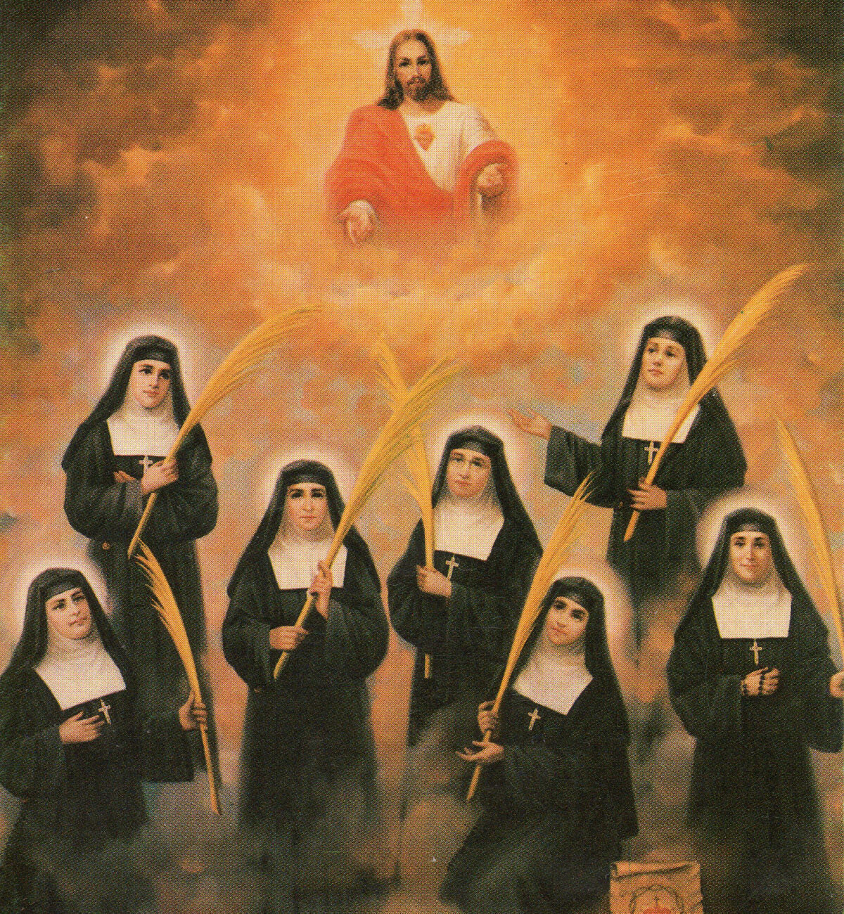 Durante a perseguição religiosa na Espanha, no ano de 1936, as religiosas Visitandinas: Maria Gabriela, Josefa Maria, Maria Inês, Maria Cecília, Teresa Maria, Maria Ângela e Maria Engrácia, formam o grupo que permanece em Madrid, cuidando do Mosteiro, enquanto a outra parte da comunidade está refugiada num povoado da Espanha, Oronoz, onde a perseguição não havia chegado. Cada uma delas começou sua vida num dia e lugar diferente, mas chega um momento em que Deus as reúne no primeiro Mosteiro da Visitação de Santa Maria em Madrid. Juntas percorrem um caminho de fidelidade nas pegadas de Cristo. Ao receberem notícias de que estão tentando incendiar o Mosteiro, estas sete Irmãs se refugiam em um porão onde preparam uma capela, com Jesus Sacramentado presente. Aí vivem vida simples, fraterna, fiel à oração e ao sacrifício, testemunhando uma caridade inesquecível. Sabem do perigo que estão correndo. Sempre pedem ao Senhor pela conversão de seus perseguidores, e lhes perdoam generosamente. Foi-lhes dada a oportunidade de pôr-se a salvo ou regressar às suas famílias sem perigo; mas não querem comprometer a ninguém e todas respondem que vão permanecer unidas e estão dispostas a morrer por Deus. Preparam-se para o iminente martírio velando toda a noite, em profunda intimidade com o Senhor e… chega a sua hora. Sua vida se conclui com uma oferenda de amor, o mais puro e perfeito; a santa alegria coroa sua fortaleza diante do martírio, com uma fidelidade a toda a prova. Diziam: “Se por derramarmos nosso sangue, a Espanha se salvar, Senhor, que seja o quanto antes”. E isto selaram com o seu próprio sangue, sendo fuziladas seis Irmãs, no dia 18 e uma no dia 23 de novembro de 1936. Assim, deram a maior prova do amor de Deus que ardia em seus corações. http://ut-pupillam-oculi.over-blog.com/article-13877057.html